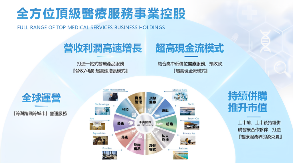 隨著併購與融資計畫的持續推進,李奧國際不僅在醫療市場站穩腳跟,更在全球健康管理領域逐步樹立其不可替代的領導地位。未來,集團將繼續以創新和資本為驅動力,推動技術普及,實現 IPO 與全球化的雙重目標。